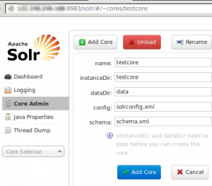 cd /opt/solr/multicore sudo mkdir testcore sudo mkdir testcore/data cp -R core0/conf testcore